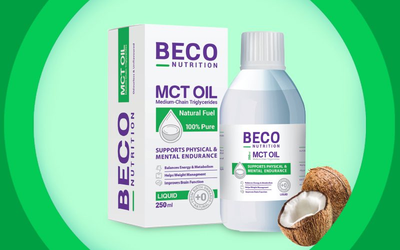 BECO-NUTRITION contains MCT oil that is made of medium-chain triglycerides, a type of triglycerides can be found in coconut oil, palm kernel oil, and various dairy products, which is used to help improve metabolic health and wellness. Compared to long-chain triglycerides or LCT, MCT is much smaller and more readily digestible. It has also been known to help improve mental focus and to slow down the progression of dementia.